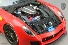 While based on the 599 GTB Fiorano ,with the same transaxle layout and engine type, this prototype is an extreme track car. Ferrari’s engineers have carried out extensive work on the engine’s combustion chambers and inlet and exhaust tracts. These modifications, combined with the fact that internal attrition has been reduced and the maximum revs have been boosted to 9,000 rpm, helped achieve the target power output of 700 hp at 9,000 rpm. Particular attention was also paid to cutting the weight of the engine unit components.