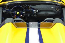 The new car sprints from 0-100 km/h in just 3.0 seconds and has a Fiorano lap time of 1’23”5. These superb results are thanks in great part to its front and rear active aerodynamics, the rigidity of a chassis that incorporates 10 aluminium alloys, and Side Slip Angle Control (SSC) which guarantees unparalleled sporty driving in all conditions, underscored by the seductively exhilarating signature Ferrari soundtrack.